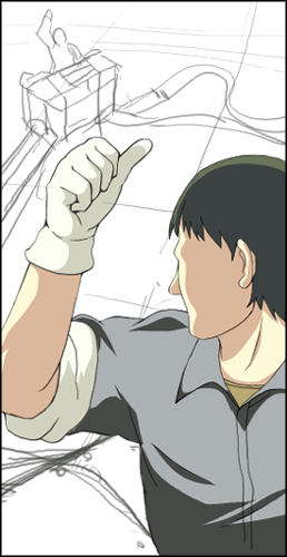 オッサン、彩色。TVアニメ風なエフェクト入れてます。